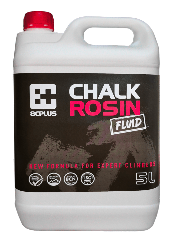 Rosin (also known as colophony) is the term collectively used for the solidified, distilled form of resins from pines, cedars, spruce, firs and junipers. Read more about its plant origins on Wikipedia. Gymnasts, weight lifters, pole dancers and stringed instrument players use rosin on their hands for a sticky grip – nerd out on this scientific study about baseball and rosin. Unlike chalk, which is mostly used to keep your hands and holds dry, powdered rosin will slightly melt with bodyheat and pressure and get slightly sticky. There is a lot of further information about the origins and use of rosin in other sports in this article about rosin bags. The use of rosin in these other activities is reasonably uncontroversial as it is easy to clean it off weight bars and instruments. Rosin has historically only been used in a handful of climbing areas world-wide – most controversially in the French bouldering mecca of Fontainebleau where it’s use has seen many popular problems turn impossibly slippery. It’s now very rare to see anyone deliberately using rosin for climbing outside of inadvertent use through liquid chalk. Disturbingly the brand 8C Plus seems quite open about selling this product for climbing in many forms – powdered, liquid chalk and mixed with dry chalk.