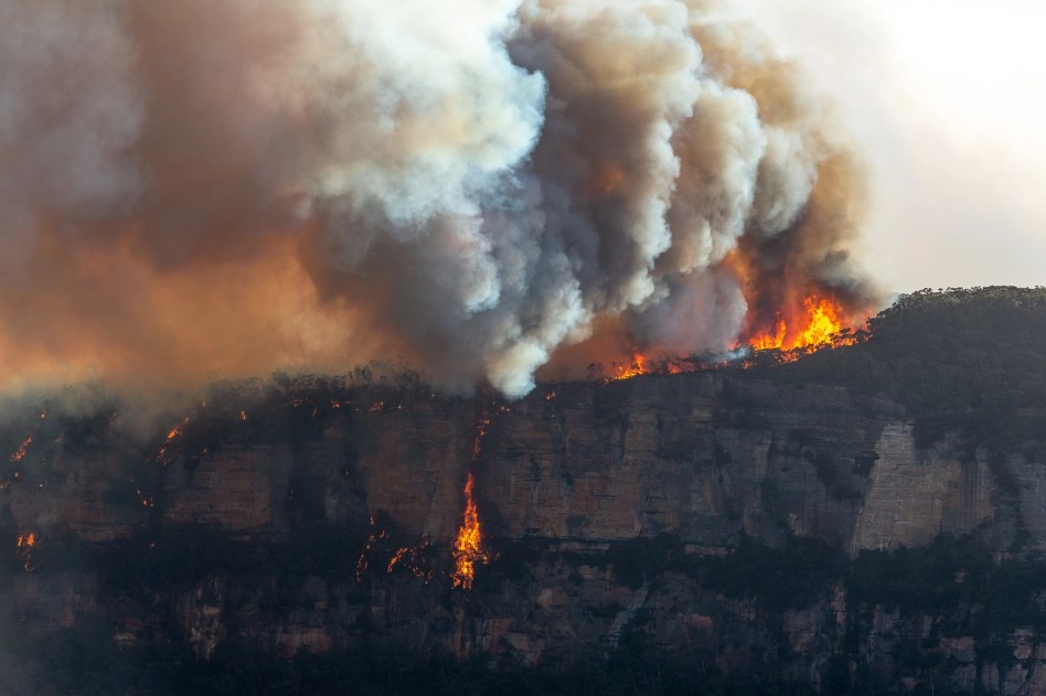 Most Australian climbing areas have a long history of regular bushfires. Places like the Blue Mountains can expect a major bushfire at least once a decade. Check out this incredible footage from 2019 as an example of bushfires interacting with climbing areas (Pulpit Rock, Blue Mtns). Bushfires can be started by natural causes, such as lightning strikes, or by people (accidentally or on purpose).